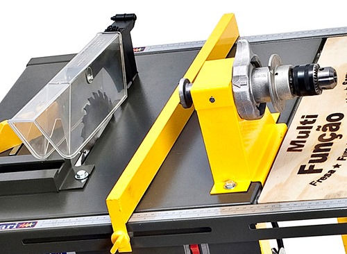 Depois de muito pesquisar imagino que a sétima função que alguns fabricantes mencionam é fresar, porém isso é algo questionável nessas máquinas. O motor tem rotação de 3600 rpm e mesmo que exista um local para uso de fresas, não é possível retificar madeira com essa velocidade. As tupias trabalham com rotações acima de 11.000 rpm.